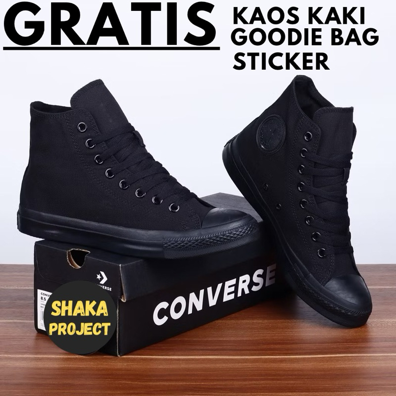 Sepatu Converse Klasik Full Black Hight Sepatu Sekolah Allstar Pria Wanita Converse Hitam BNIB
