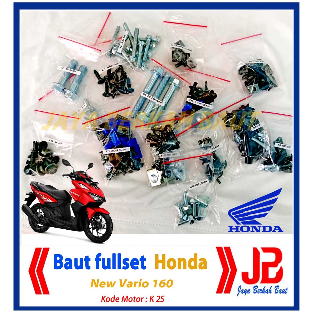 Baut Fullset Honda Vario 160 Kode Motor: K2S / baut full body MOTOR