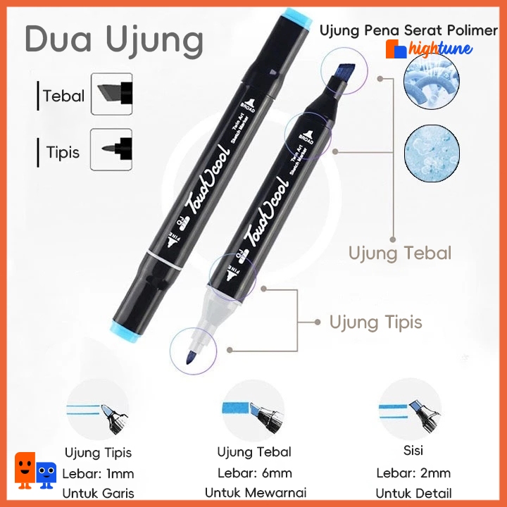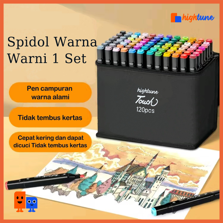 Hightune Spidol Sketsa Spidol Umum 24/60/80/100/120 Warna Spidol Brush Pen Animation Markers