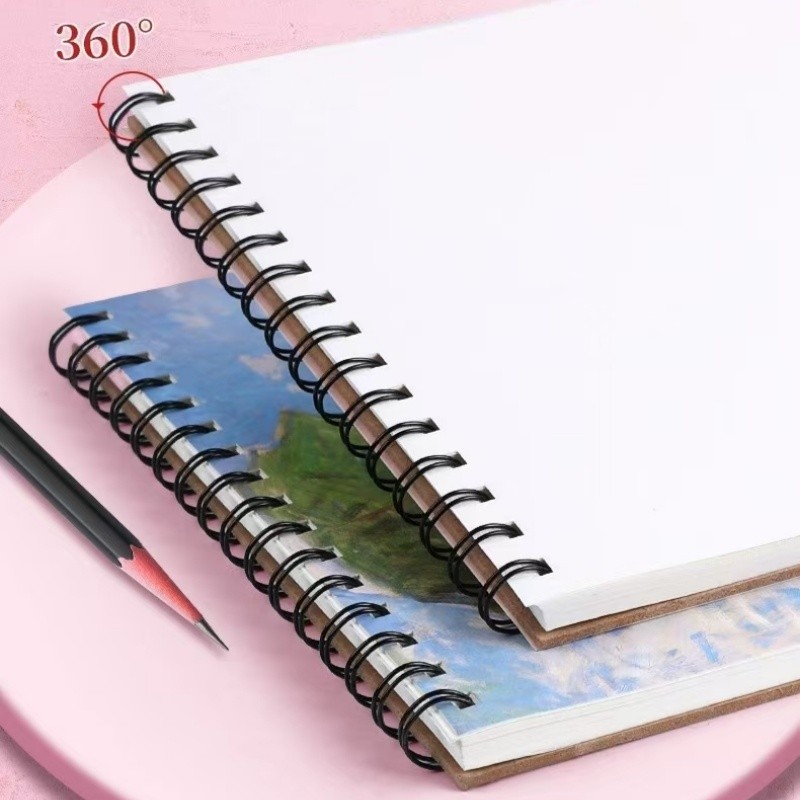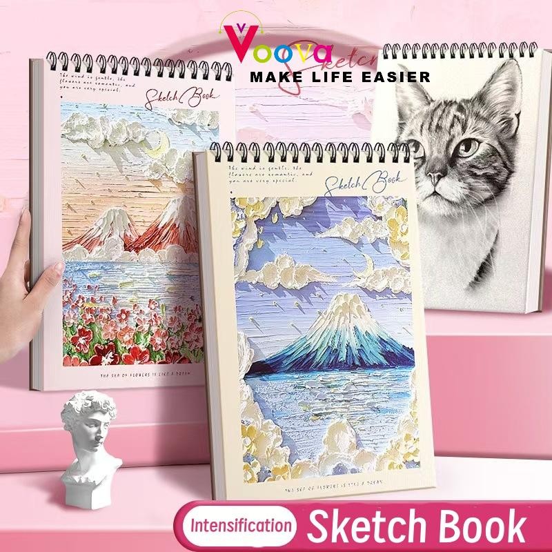 VOOVA Sketchbook A4 / Buku Gambar Aesthetic/ Buku Gambar Vertikal Jilid Spiral 45 Halaman/ Buku Melukis