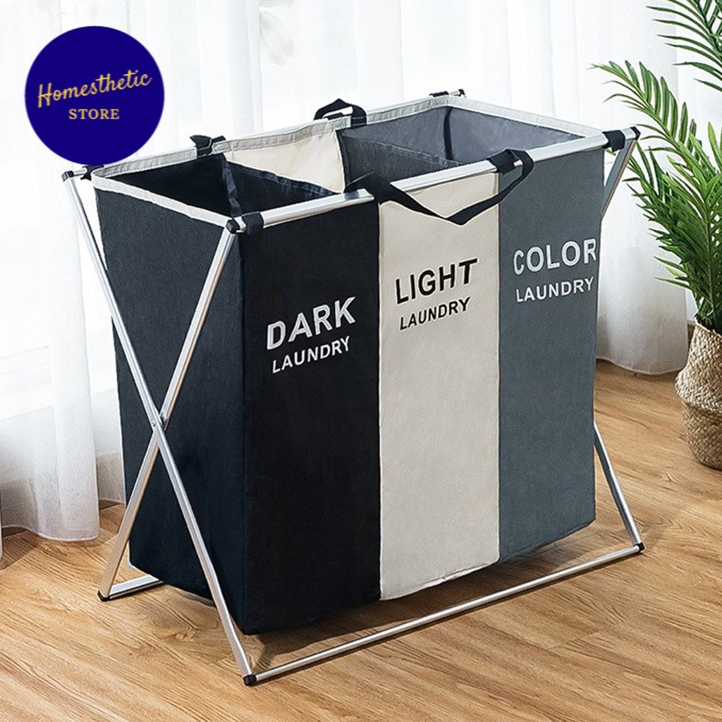 Keranjang Penyimpanan Pakaian Kotor Three Grid Laundry Tempat Cucian Baju Kotor Keranjang Laundry