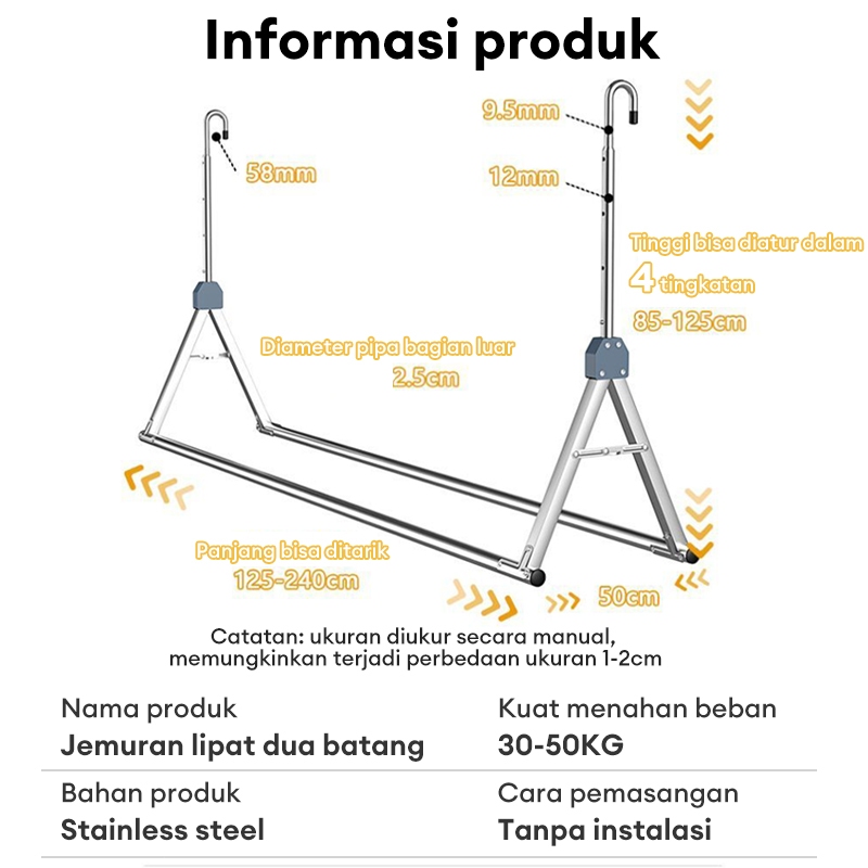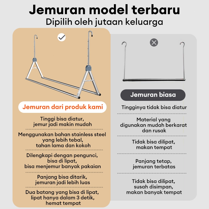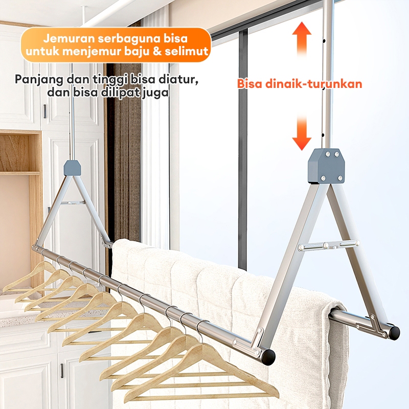 Cottoli Jemuran Gantung Dinding Jemuran Lifting Baju Alumunium Jemuran Lipat Jemuran Untuk Balkon Kanopi Tiang