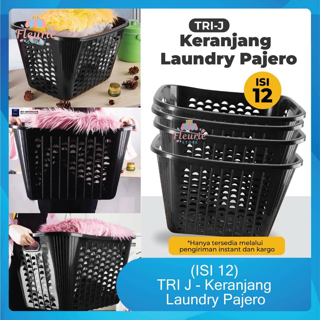 (ISI 12) TRI J - Keranjang Laundry Pajero - HITAM (Keranjang Serbaguna Jumbo Bahan Plastik)