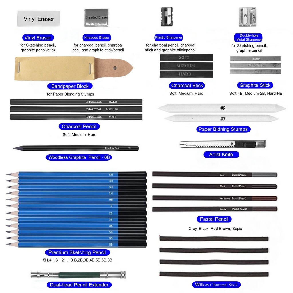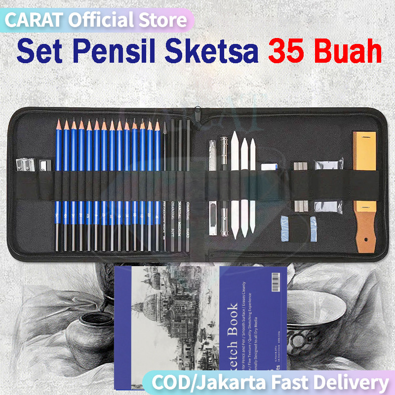 CARAT 35PCS/Set Sketch Pencil Pisau Penghapus dan Pensil Gambar untuk Keperluan Sekolah Pencil Drawing Set