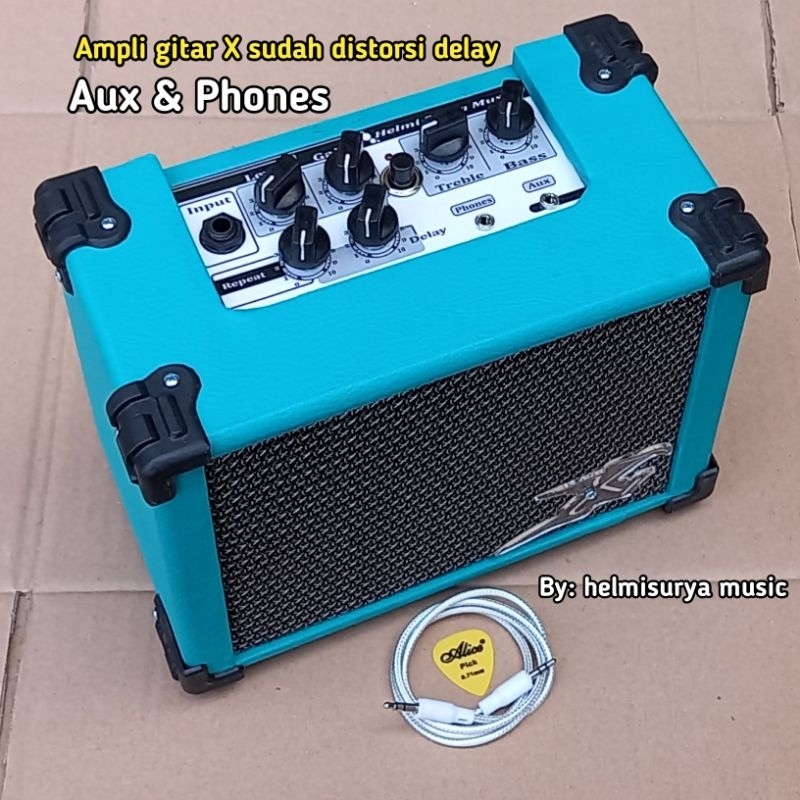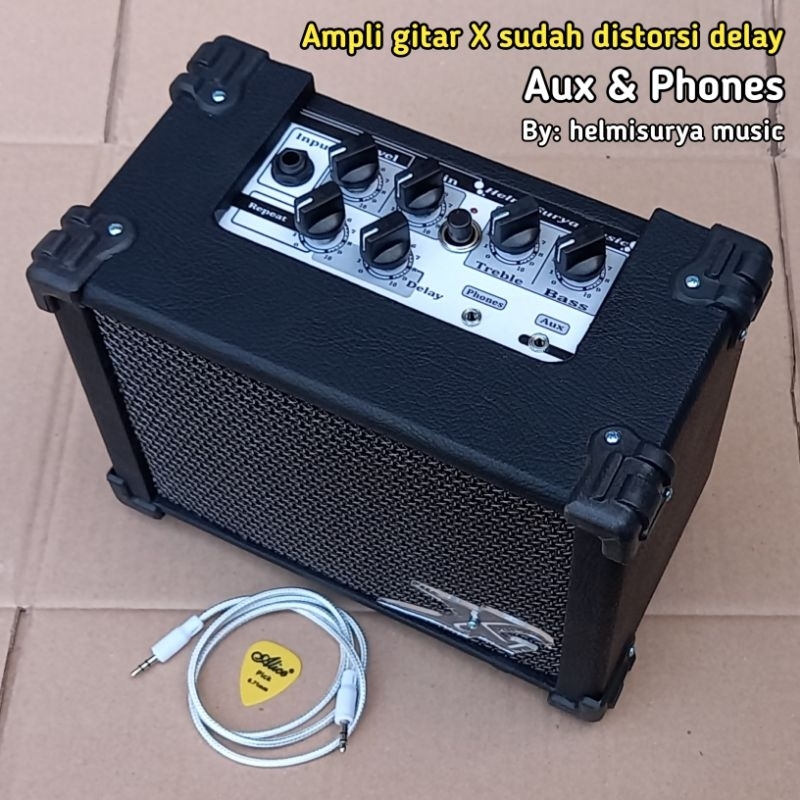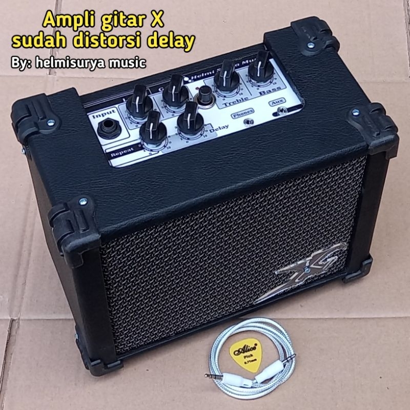 Ampli gitar - Ampli gitar X mini 4inch sudah distorsi delay Aux dan headphone Suara Mantap