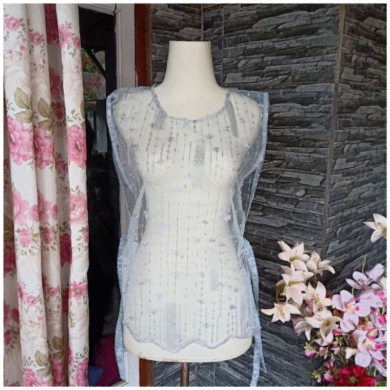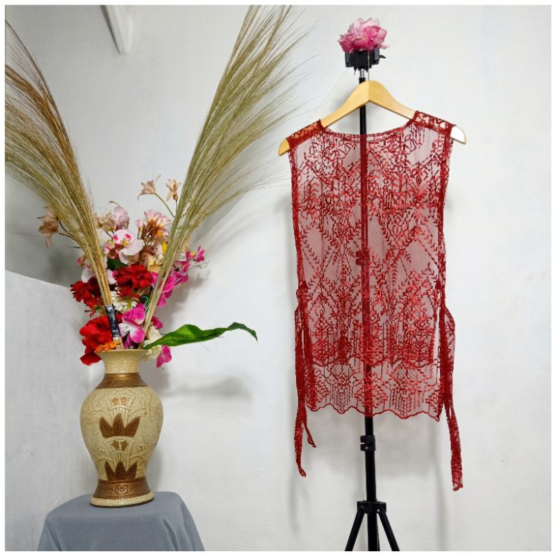Vest Brokat tile Rompi Tali Samping Outer Korean Style