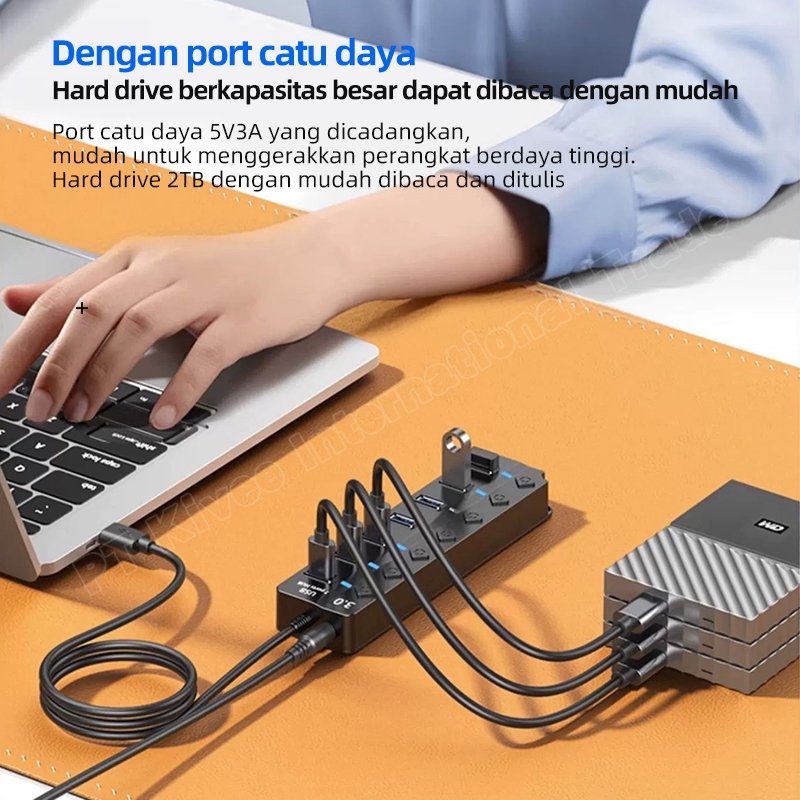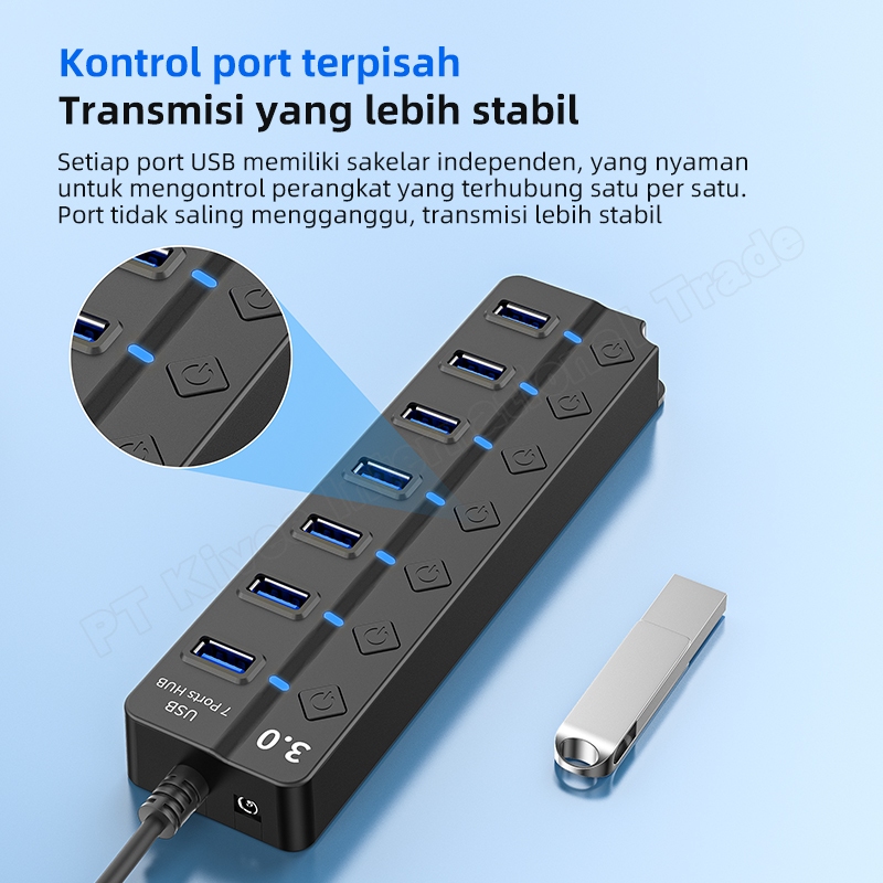 (HOT) KIVEE USB Hub 7-in-1 USB 3.0 5Gbps saklar independen KV-AD22 Black Aksesoris Desktop & Laptop
