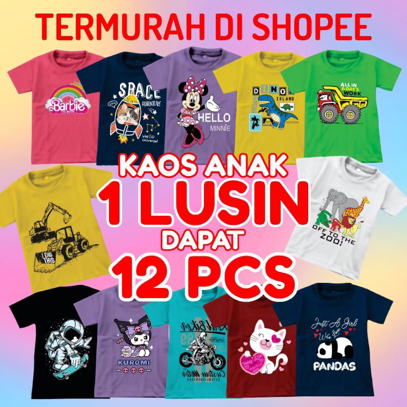 KAOS ANAK 1 LUSIN 12 PCS BAJU ANAK LAKI-LAKI PEREMPUAN