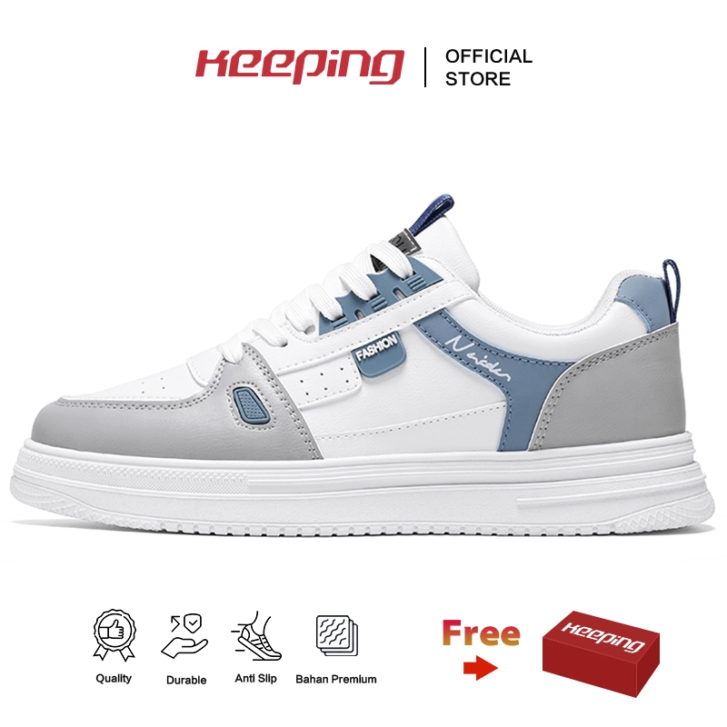 Keeping Sepatu Pria Sport Sepatu Jogging Sekolah Sepatu Sneakers Cowok Putih Biru Kekinian KSR137