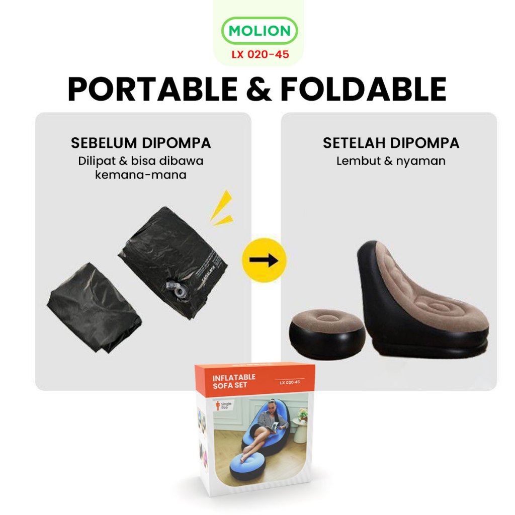 𝐌𝐎𝐋𝐈𝐎𝐍 𝐒𝐍𝐈 Sofa Angin Beanbag Aestetik Squishy Jumbo Inflatable Sofa + Stool Tiup Lazy Bag Outdoor Indoor Lay Bag 020-45