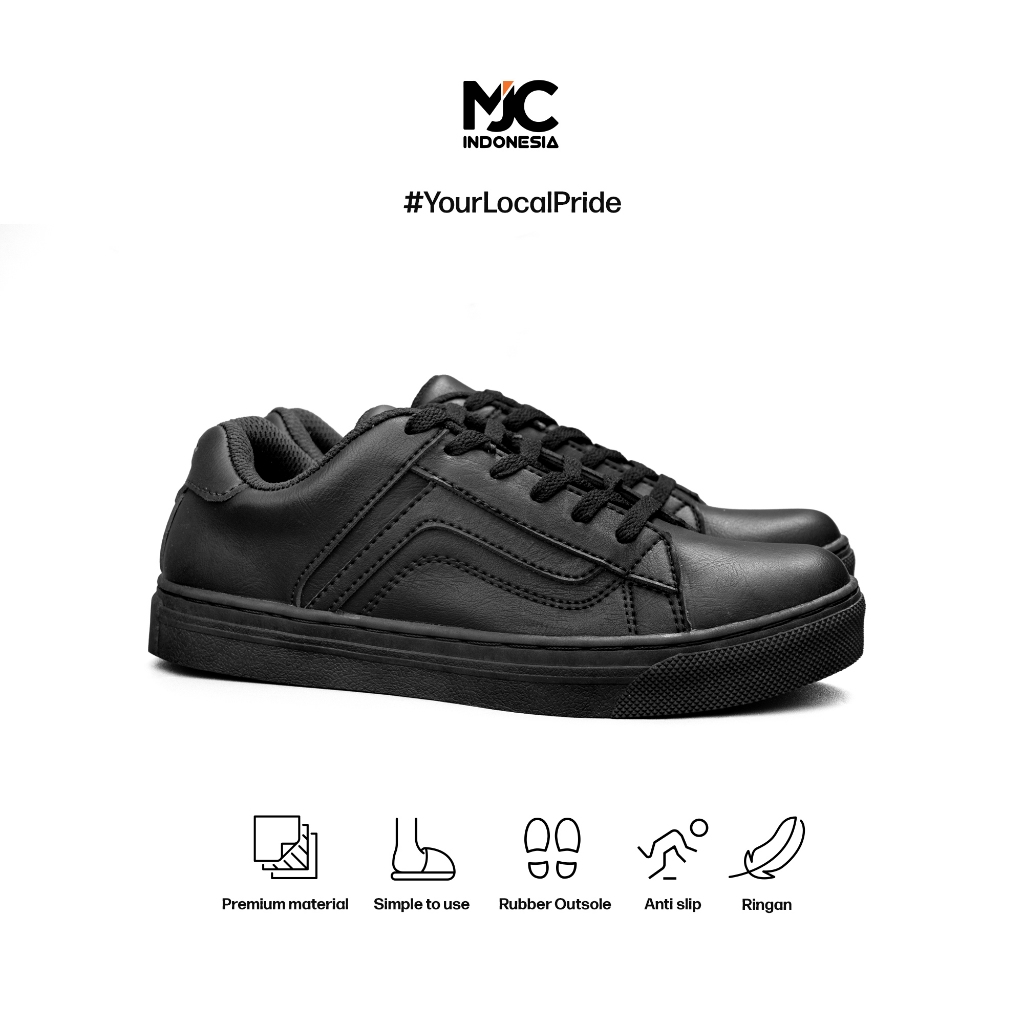 MJC Indonesia Sepatu Sekolah Hitam Sepatu Pria Sneakers Original Formal Kuliah Kerja Pria Sepatu Tali Kulit Pantofel Shoes Fabrica Full Black