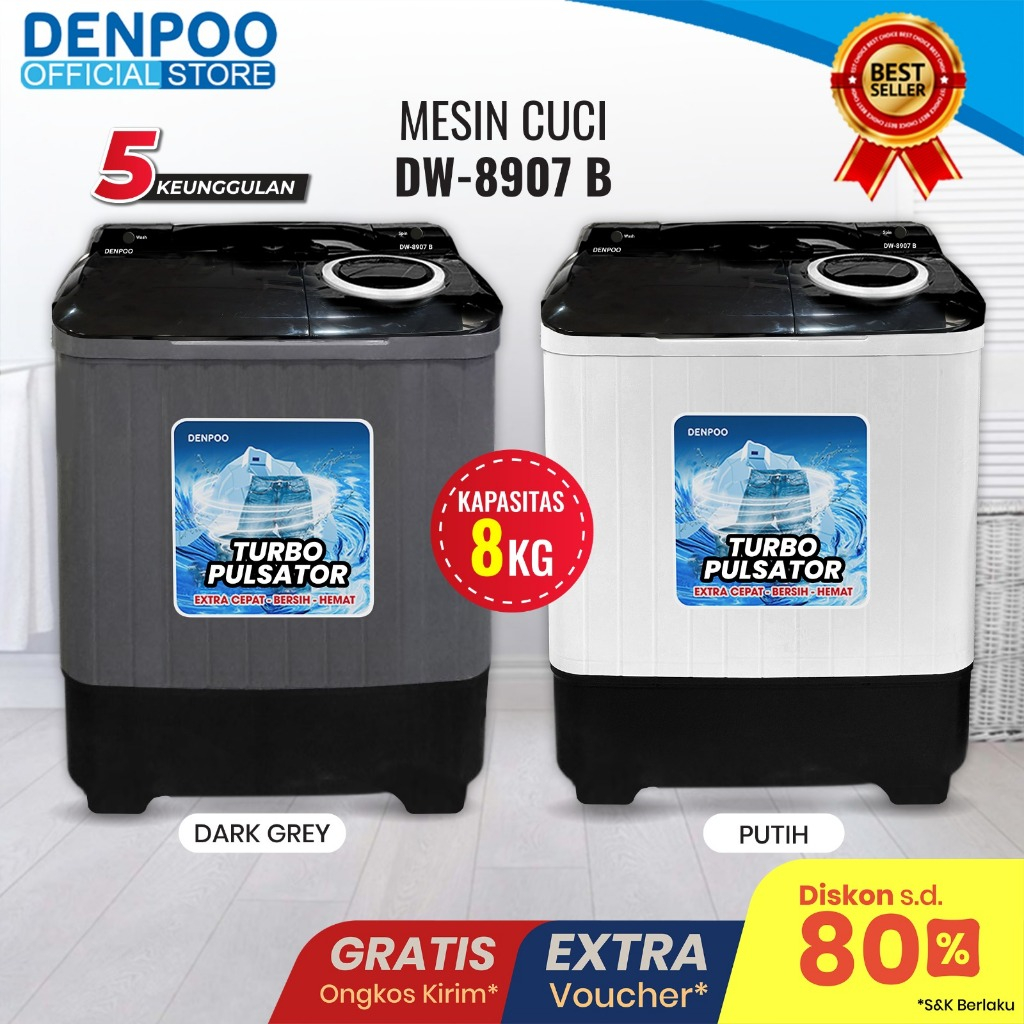 DENPOO MESIN CUCI 2 TABUNG DW 8907B 8KG