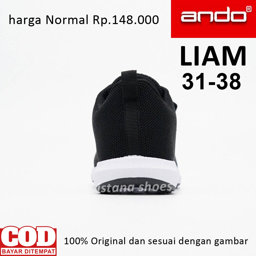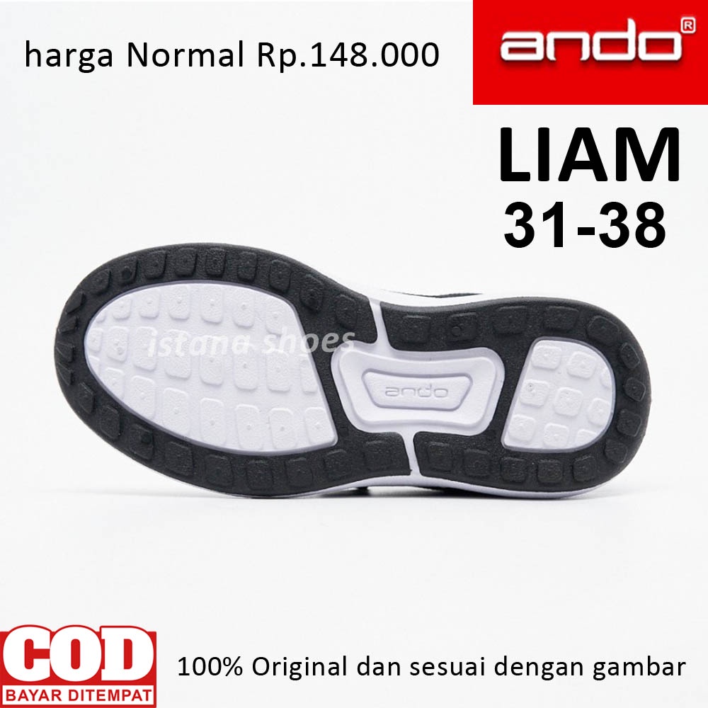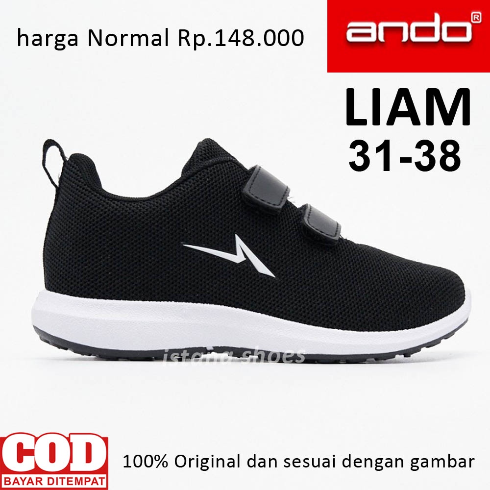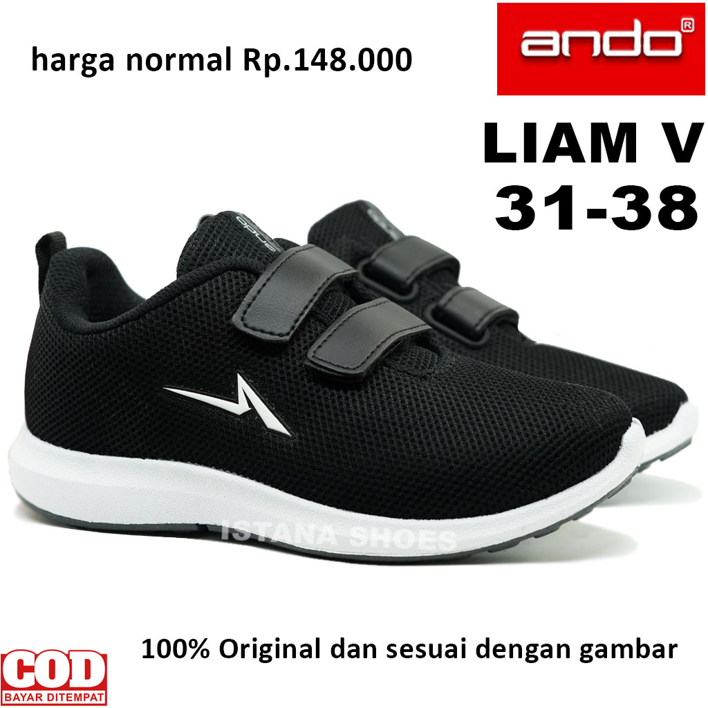 Sepatu Sekolah Anak Perempuan Laki Laki ANDO LIAM Hitam Putih Perekat, Sepatu Sekolah PAUD TK SD SMP