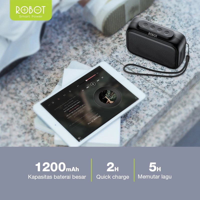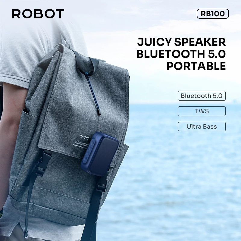 Speaker Bluetooth Robot RB100 Wireless TWS Bluetooth 5.0 Hi-Fi Mini Audio Super Bass Portable Stereo – Original 1 Tahun