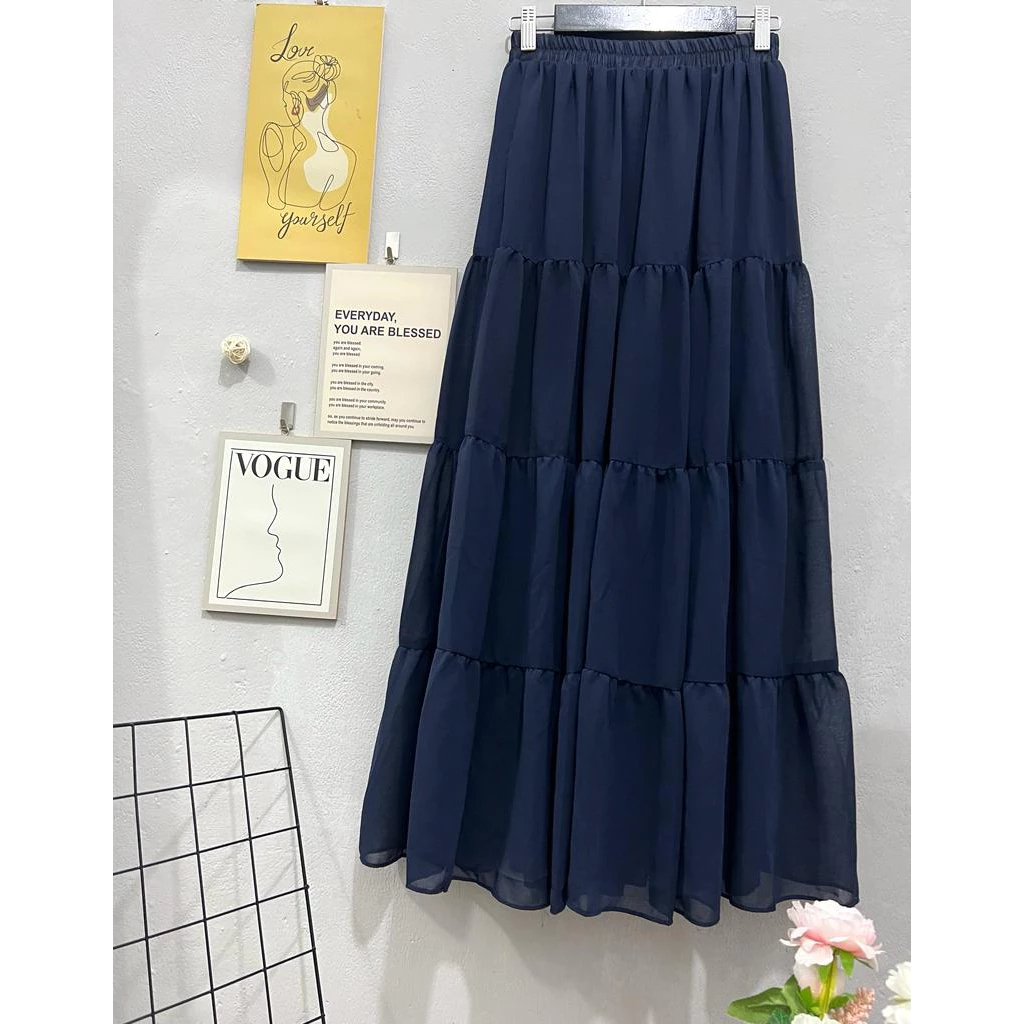 rok panjang beraksen 4 susun | long skirt korean style | rok wanita muslim
