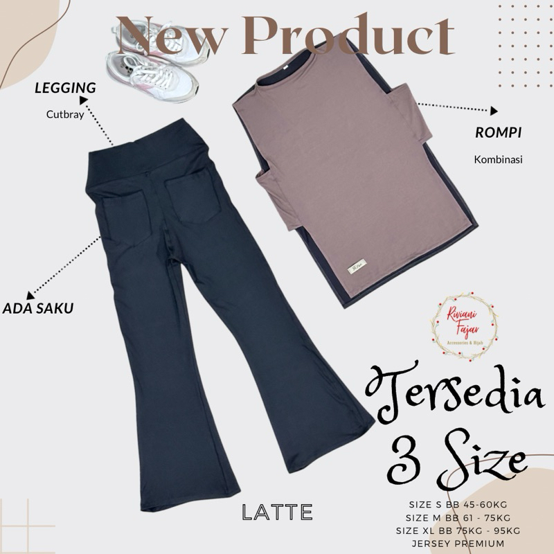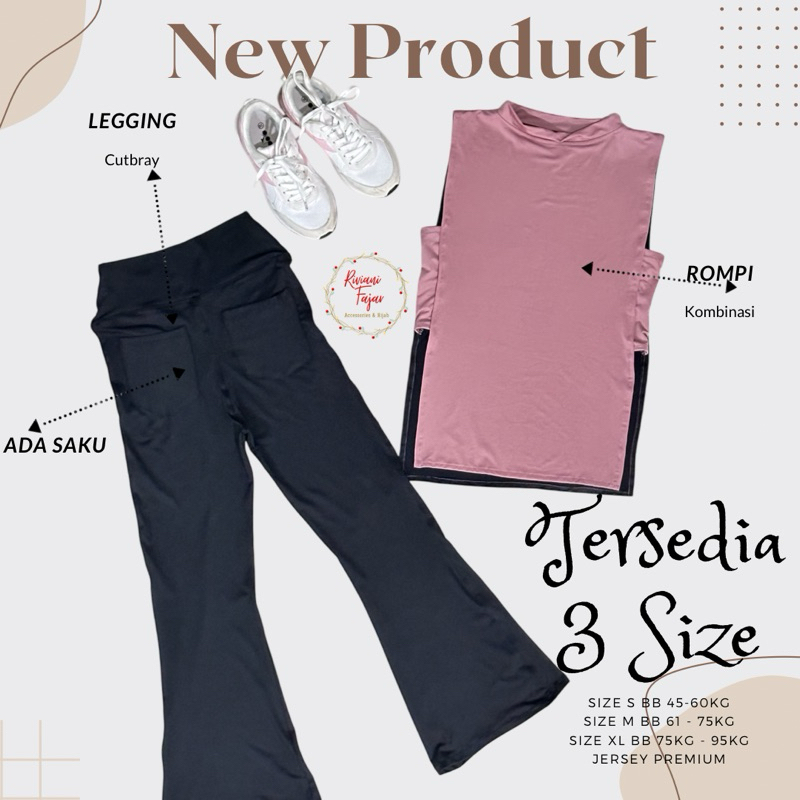 One Set Baju Olahraga 2 Warna Kombinasi Jersey Celana Cutbray Wanita Muslim Sporty