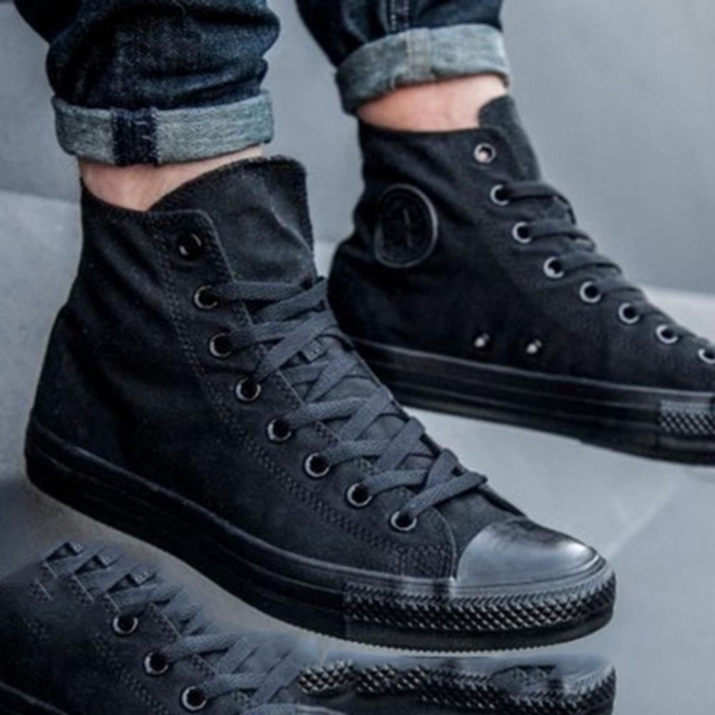 Sepatu Sekolah Anak Perempuan Laki-laki Hitam Putih Polos Converse Hight Low