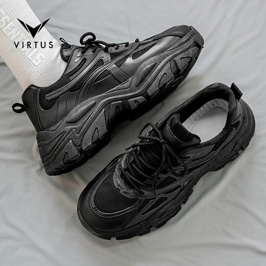 VIRTUS Wear 39 - 44 SCAR Sepatu Sneakers Pria Sekolah Full Hitam Olahraga Lari Casual Tali Kerja