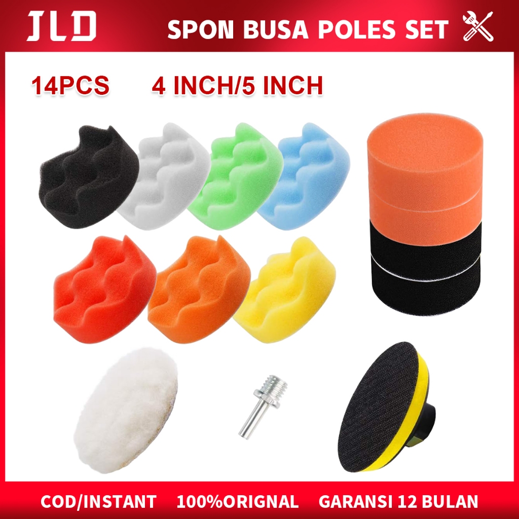JLD Busa Alat Poles Motor Mobil 4/5Inch Sponge Polishing set 14PCS Berisi Pad Velcro Adaptor