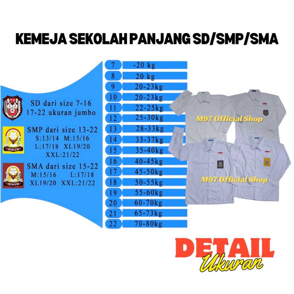 Kemeja Putih Lengan Panjang SD SMP SMA Baju Hem Seragam Sekolah SD SMP SMA Tebal Oxford Logo Bordir