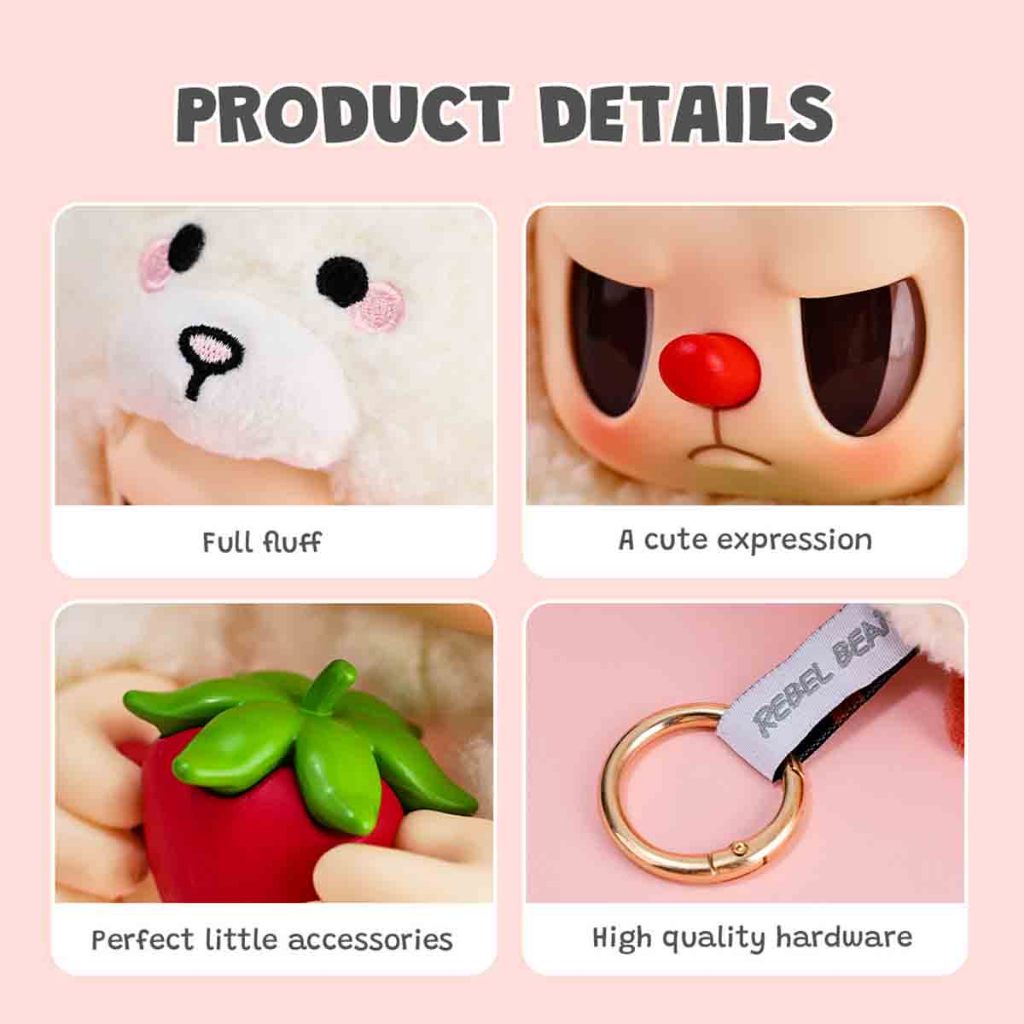 Miniso X Rebel Bear Animals Collection Vinyl Face Plush Blind Box Plush Toy Surprise Box Boneka Gantungan