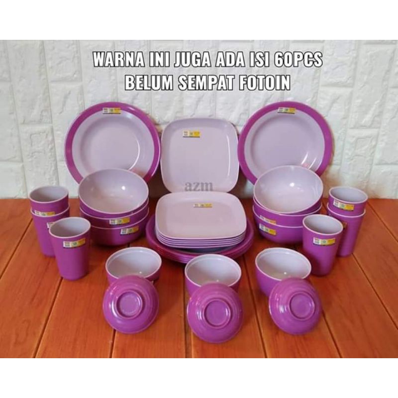 Set melamin 60pcs paket lusinan en dragon - hijau lumut
