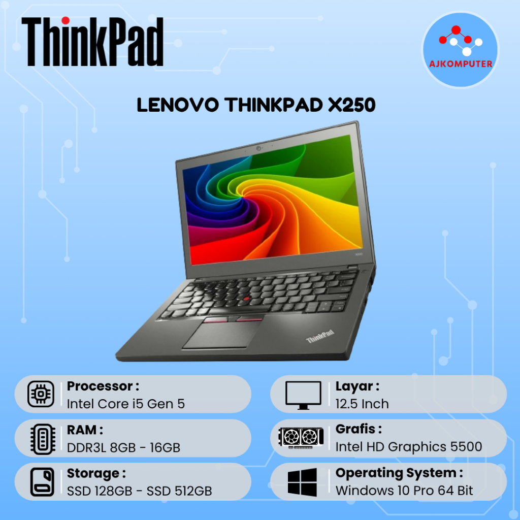 LAPTOP LENOVO THINKPAD X240 X250 X260 X270 X280 CORE i3 / i5 / i7 ORIGINAL MURAH BERGARANSI