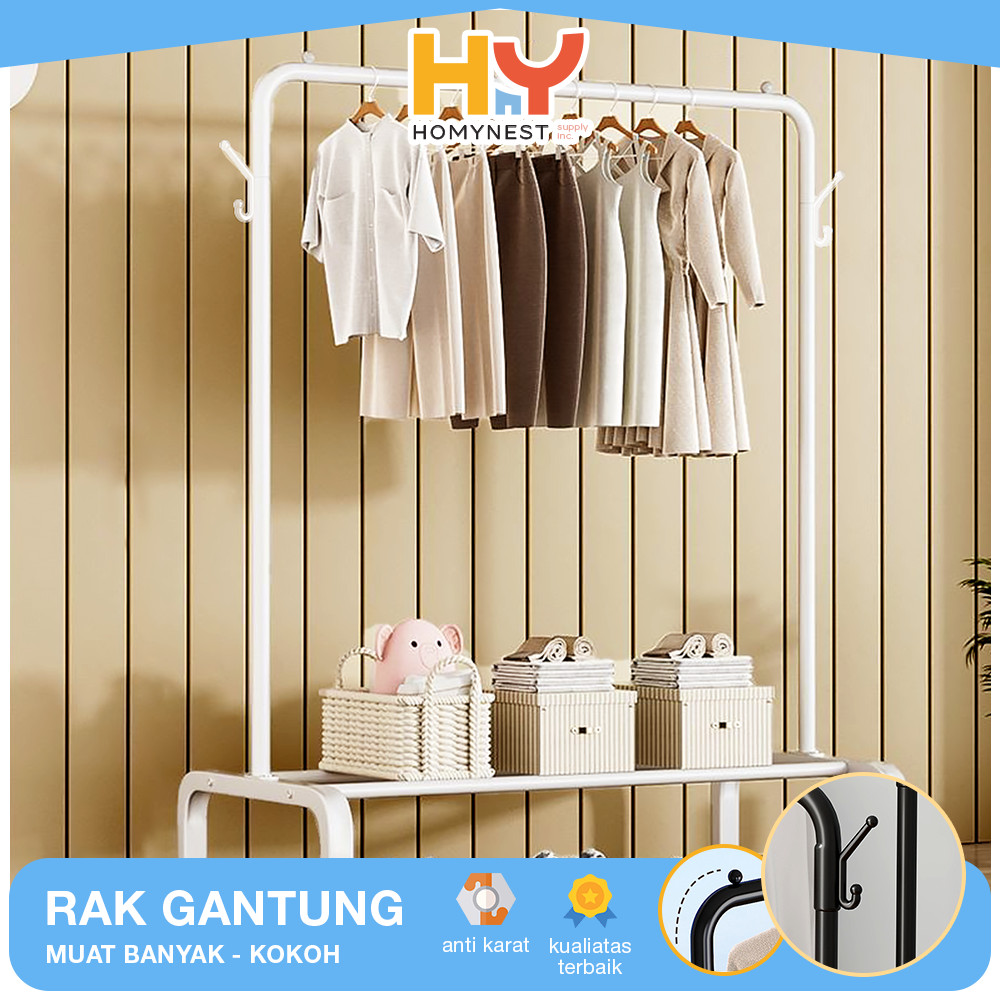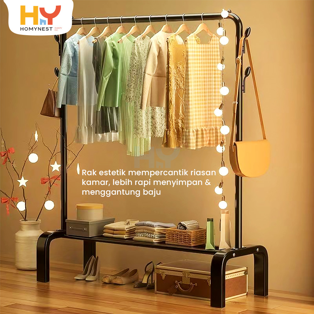 HOMYNEST Stand Hanger Gantungan Baju Berdiri Bahan Besi Tempat Gantung Baju Serbaguna Rak Premium Quality