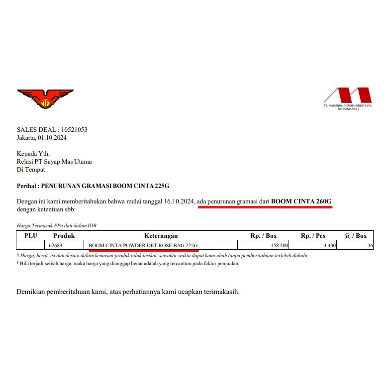 1 DUS ISI 36 PCS DETERJENT BOOM CINTA