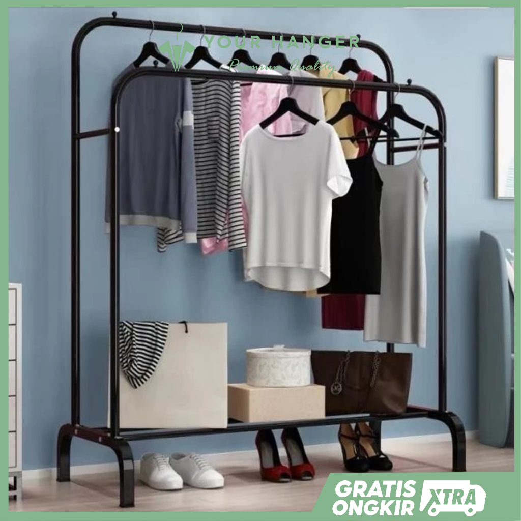 Stand Hanger Gantungan Baju Berdiri Bahan Besi Tempat Gantung Baju Gawangan Baju Rak Baju