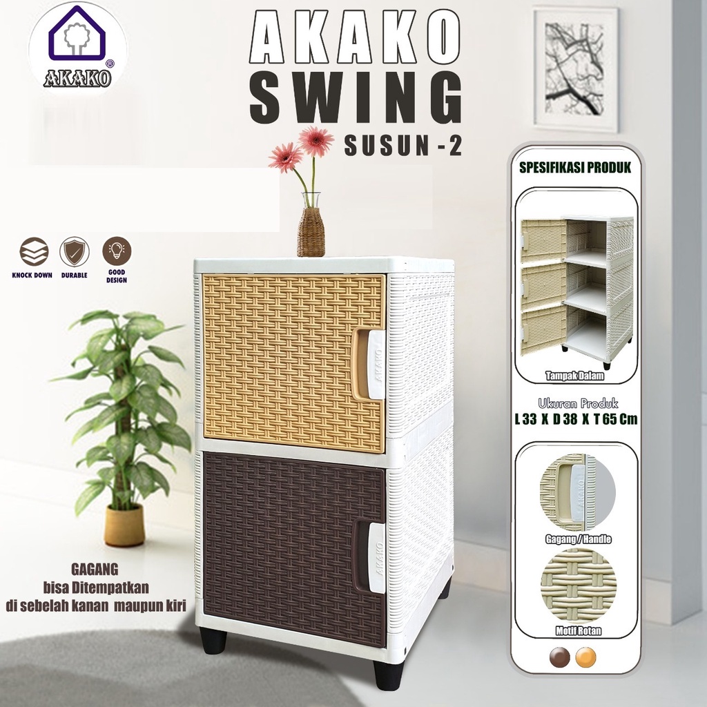 AKAKO - LEMARI PAKAIAN PLASTIK MINIMALIS/LEMARI ROTAN AKAKO SWING 2 SUSUN