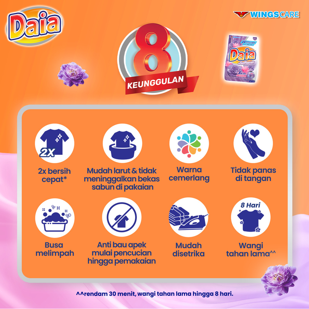 Paket isi 2 Daia Deterjen Softener Bubuk Violet 4KG promo