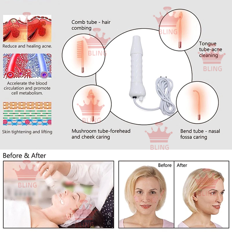 High Frequency Hf Frekuensi Tinggi Alat Facial Portable Skincare Kecantikan Salon Jerawat Ozon / Jerawat