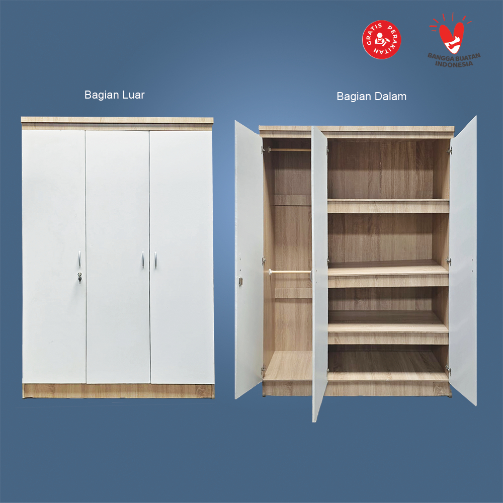 Harvest Furniture Lemari Baju Pakaian 3 Pintu GAMIS Aesthetic Estetik