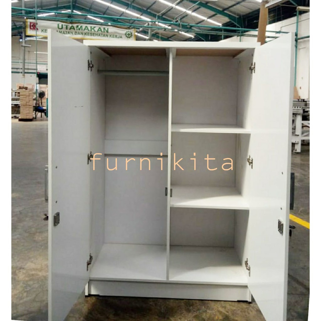 LEMARI PAKAIAN 2 PINTU KAYU KACA PUTIH BABY LOCKER