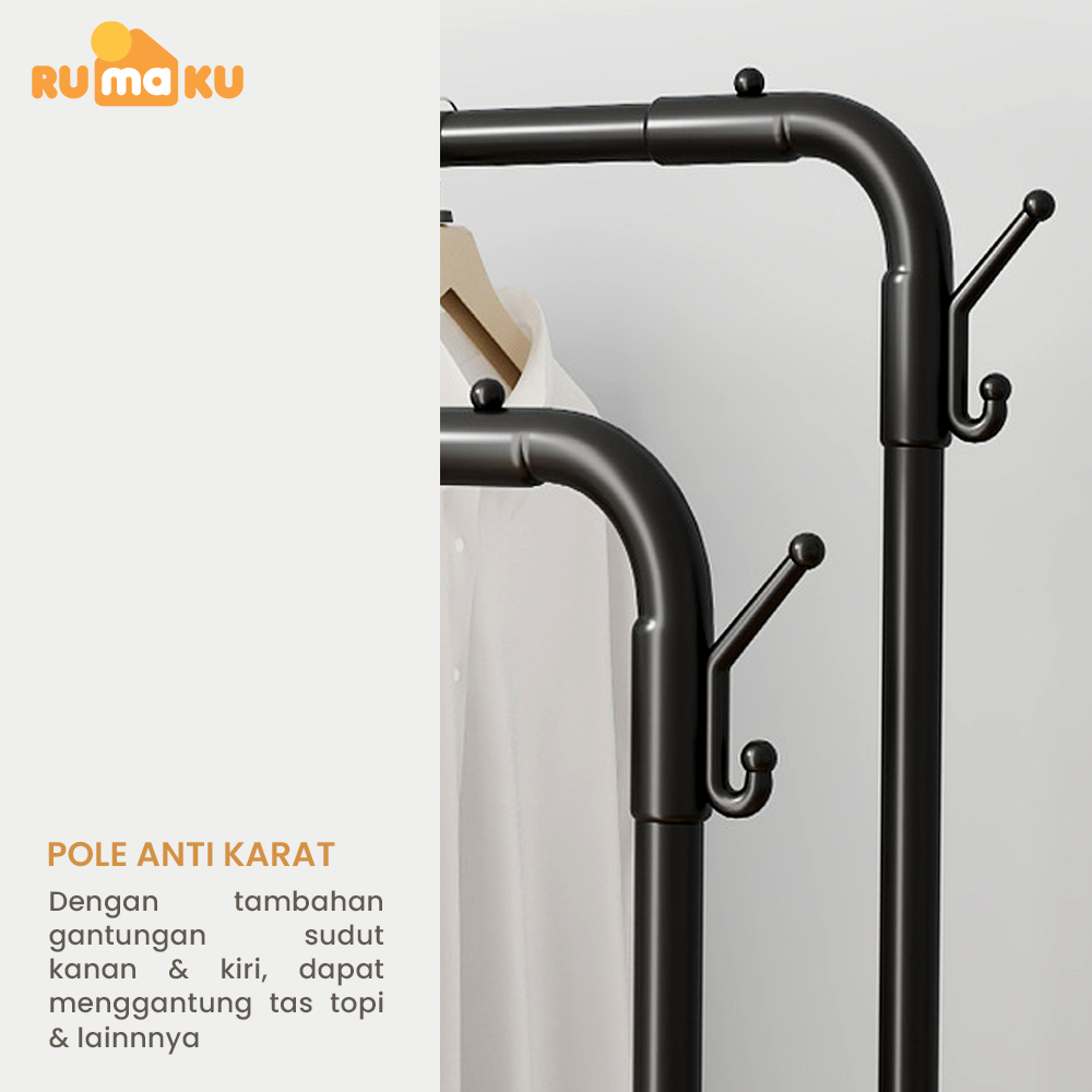 Rumaku Stand Hanger Gantungan Baju Berdiri Bahan Besi Tempat Gantung Gawangan Rak Baju Serbaguna Premium Quality