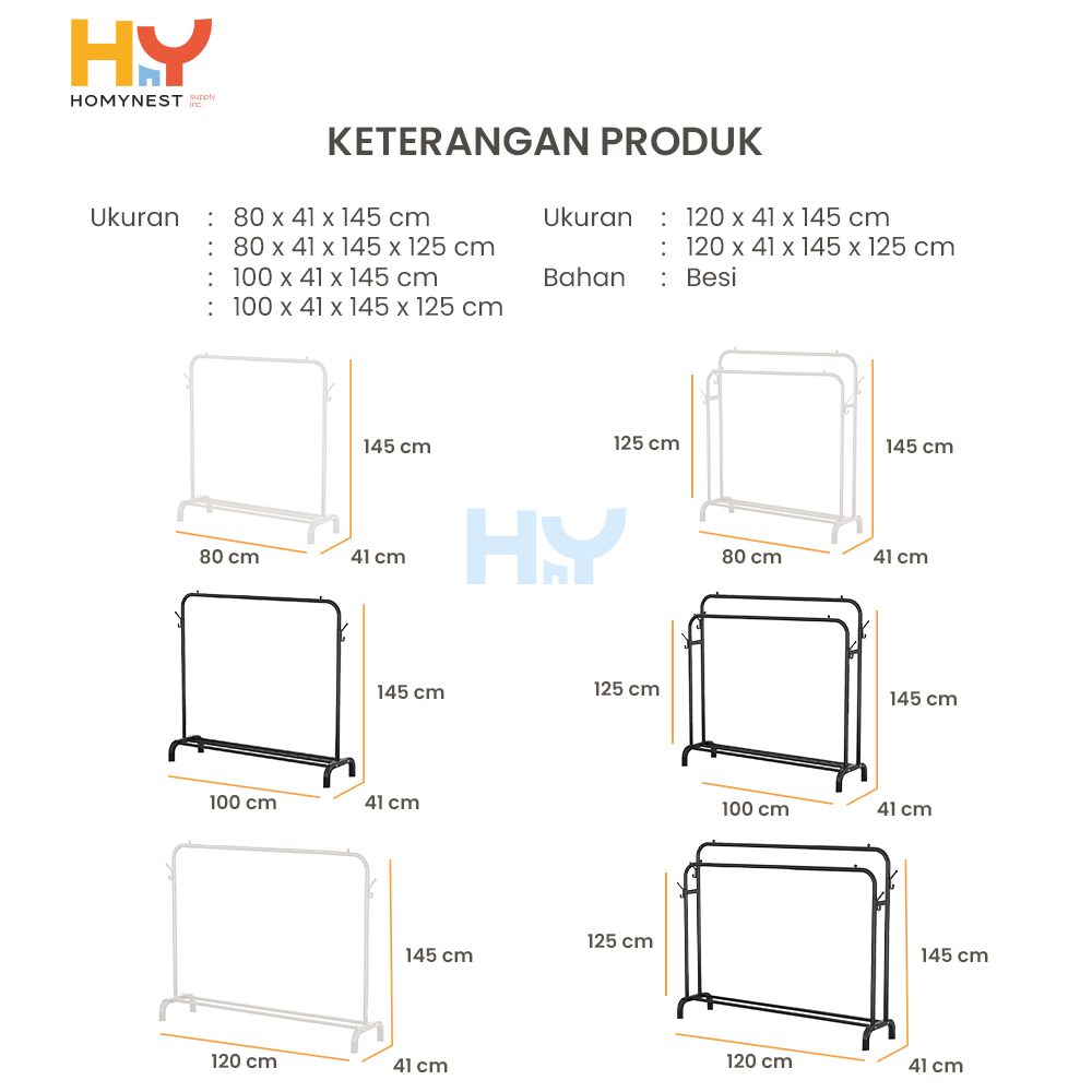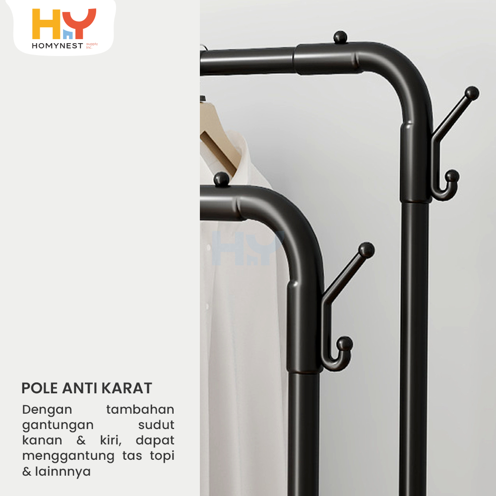 HOMYNEST Stand Hanger Gantungan Pakaian Gawangan Baju Besi Berkualitas