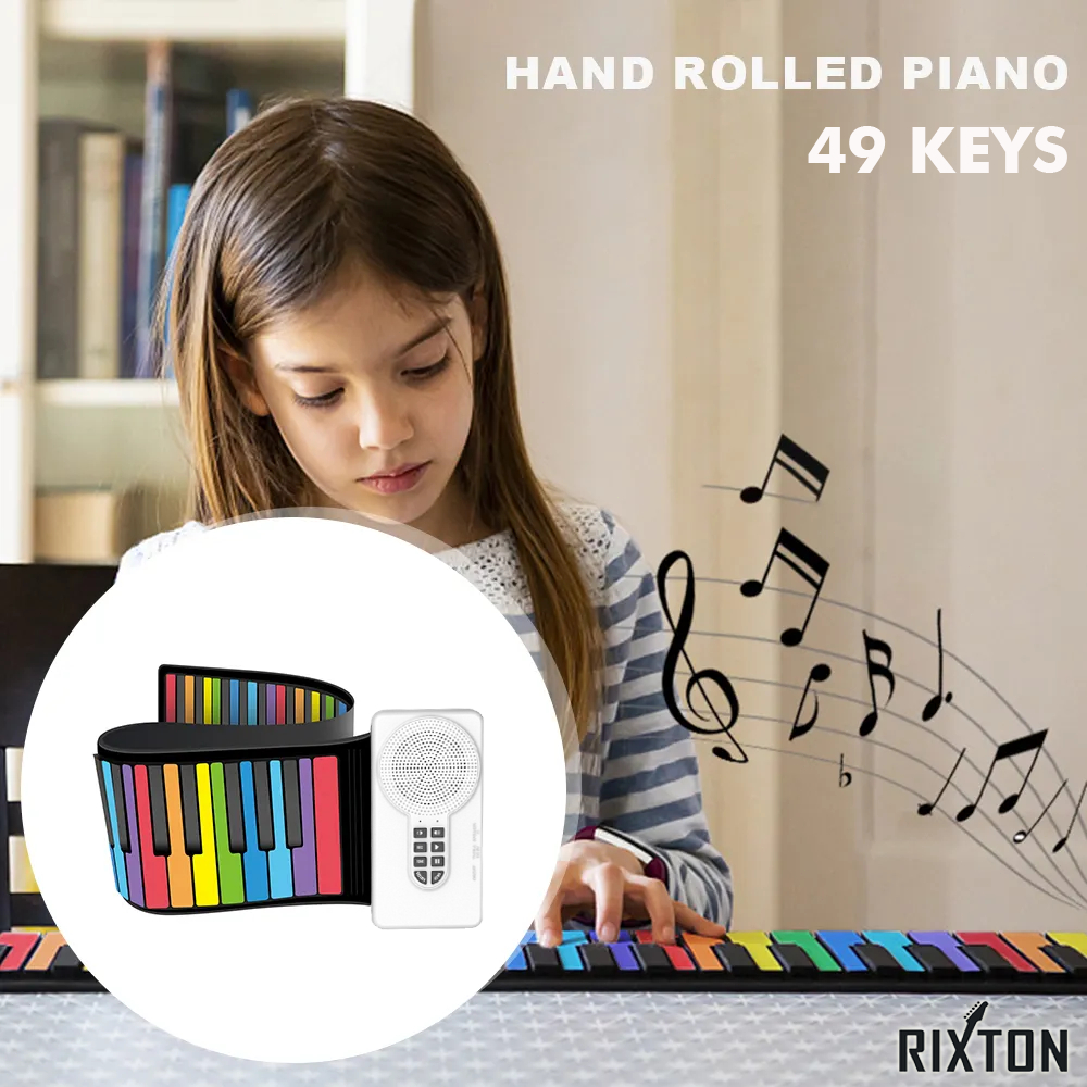 RIXTON 49 Tombol Roll Up Piano Keyboard Portabel Hand Roll Piano untuk Anak-anak/Pemula Isi Ulang