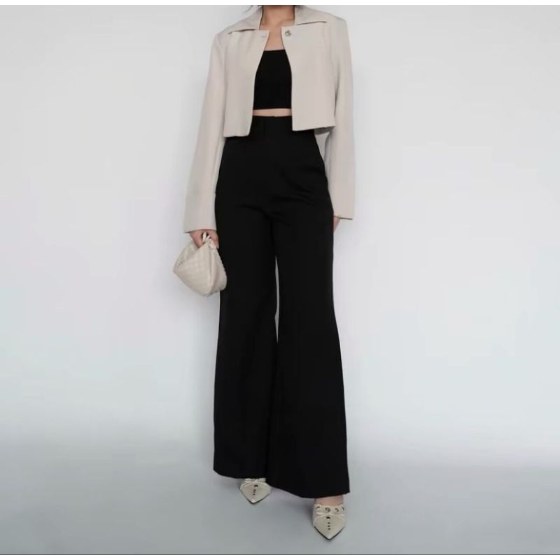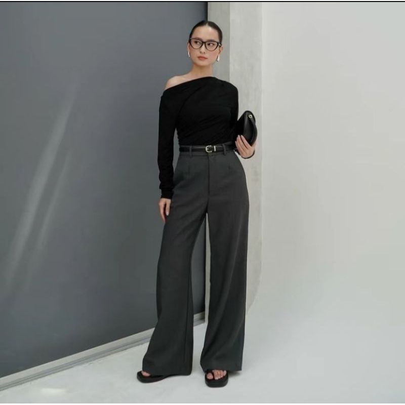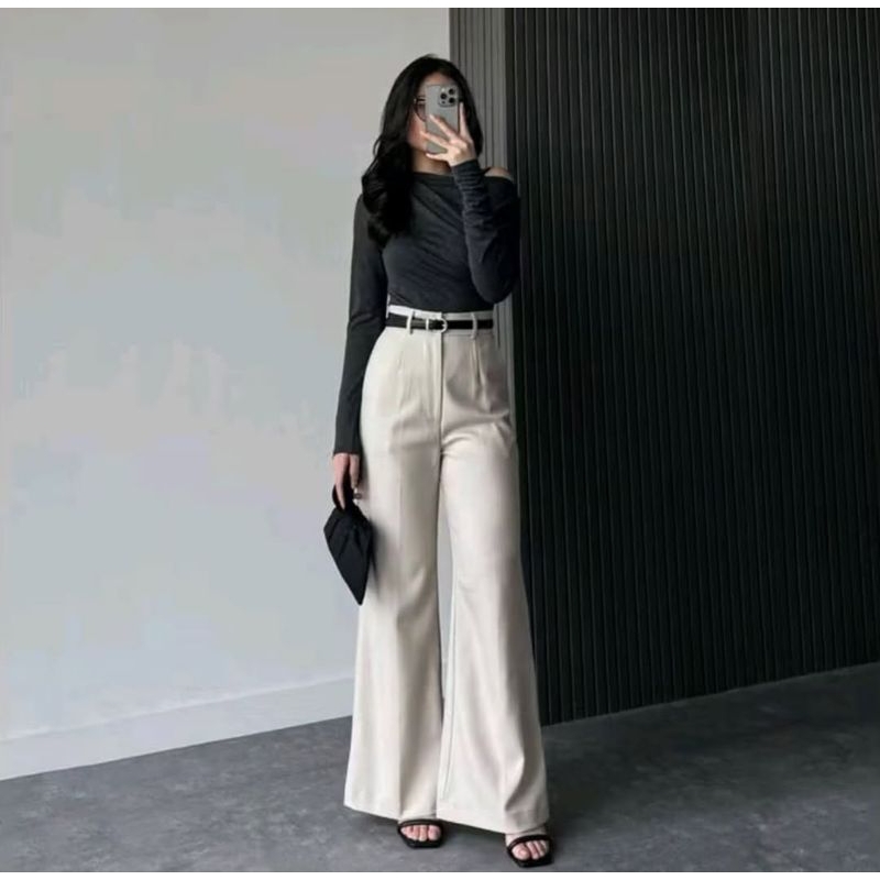 Etta Pants Celana Wanita Panjang Formal Kerja Kantor Kulot Cutbray Loose Pants Highwaist Anti Kusut Trousers Terbaru Kekinian Bahan Semi woll