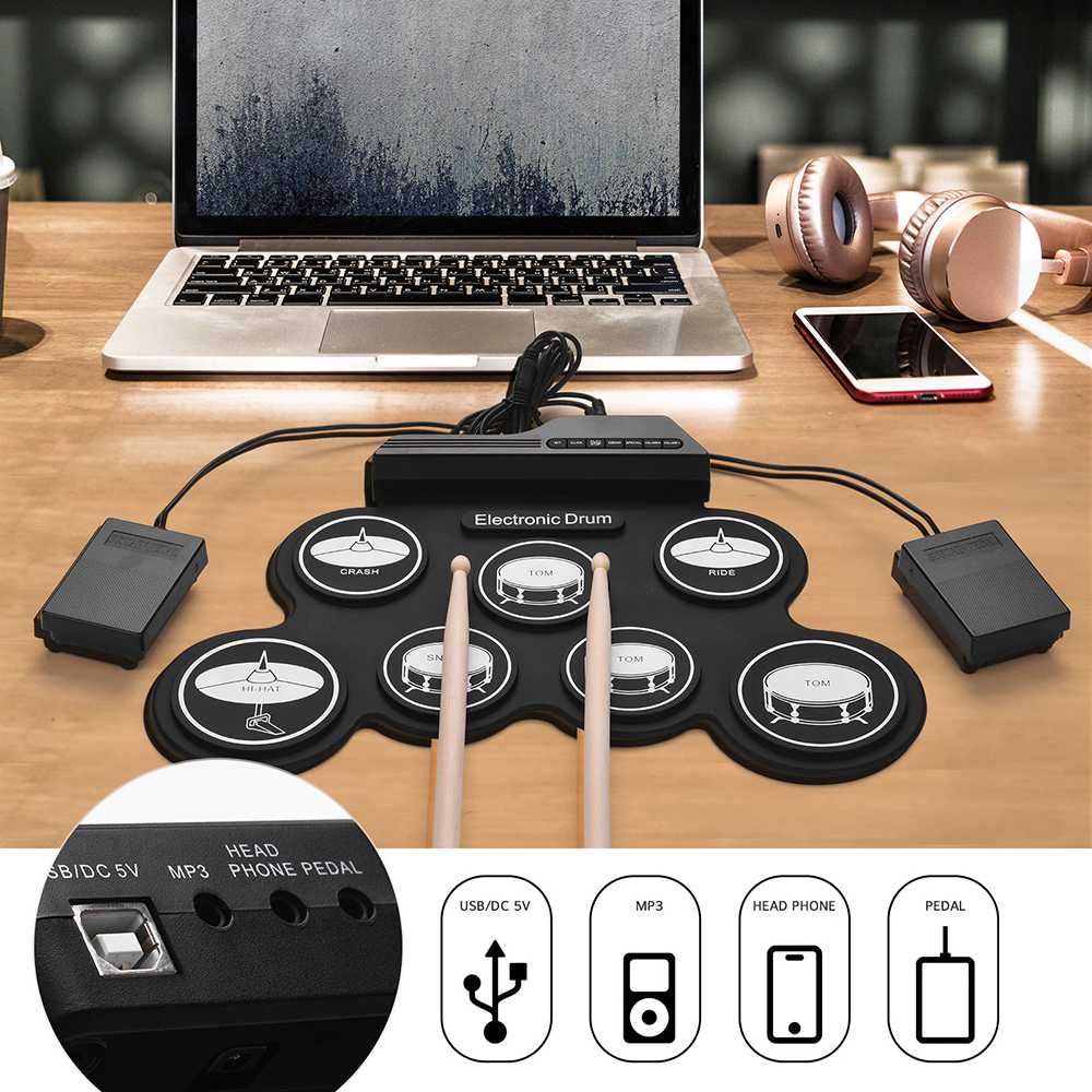 Ammoon Electronic Digital Drum Kit 7 Pads Folding USB Power - G3003