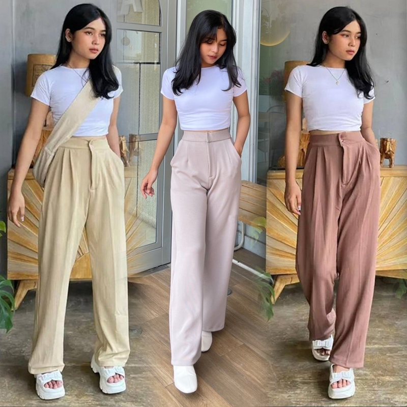 Celana Kulot Highwaist Daily Wanita JENNIE PANTS KNIT PREMIUM Cullote Highwaist Panjang Kekinian