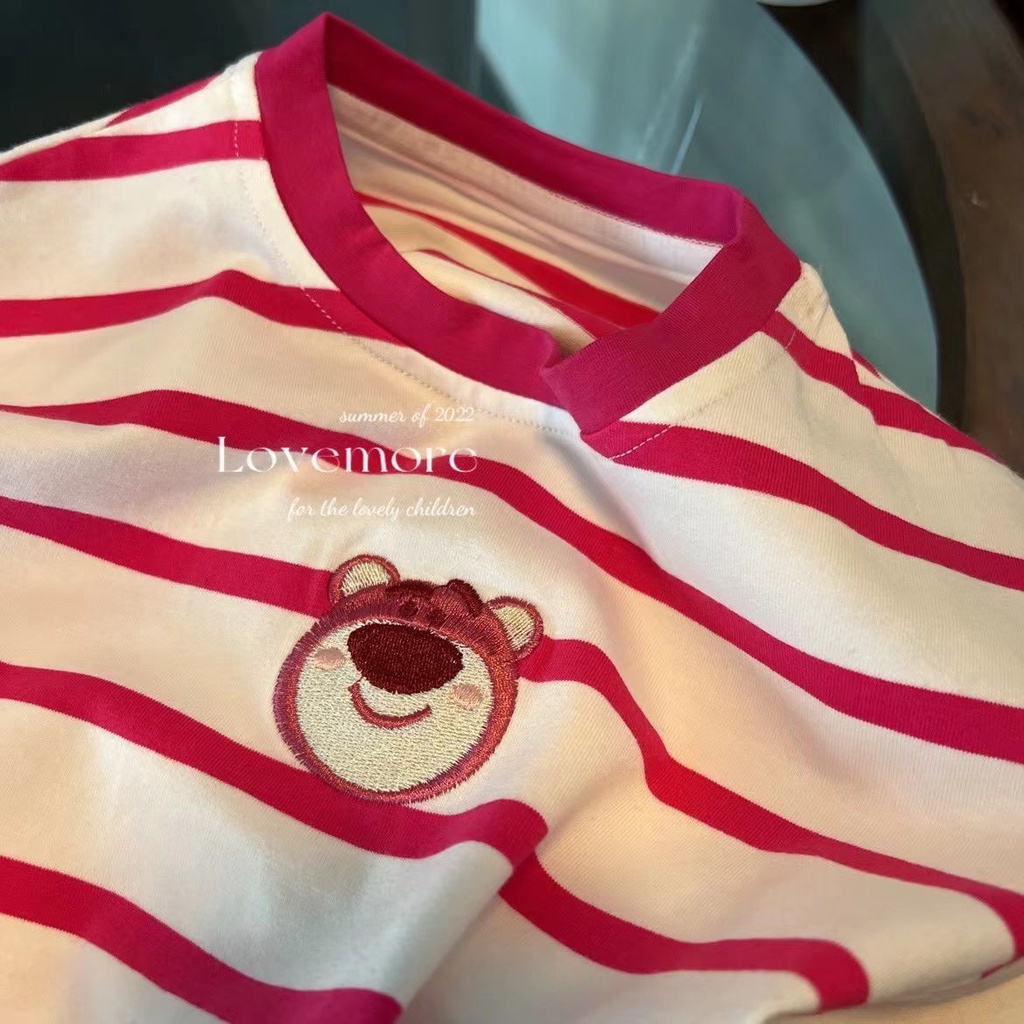 [PRINCESS KESLI] 1-9 Tahun Kaos Lotso Anak Perempuan Salur Bear Bordir T-shirt Kartun Kasual Leher Bulat