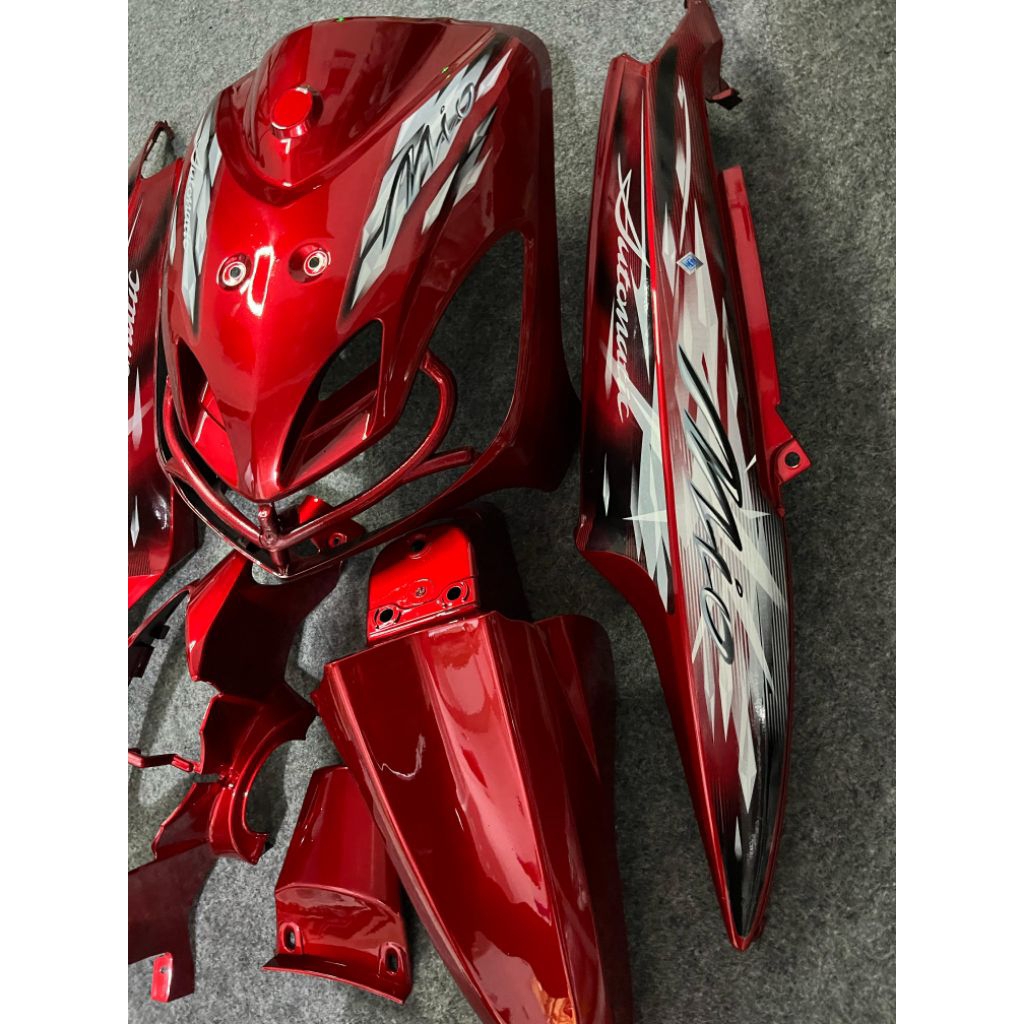 Cover full body halus yamaha mio smile warna merah marron plus striping