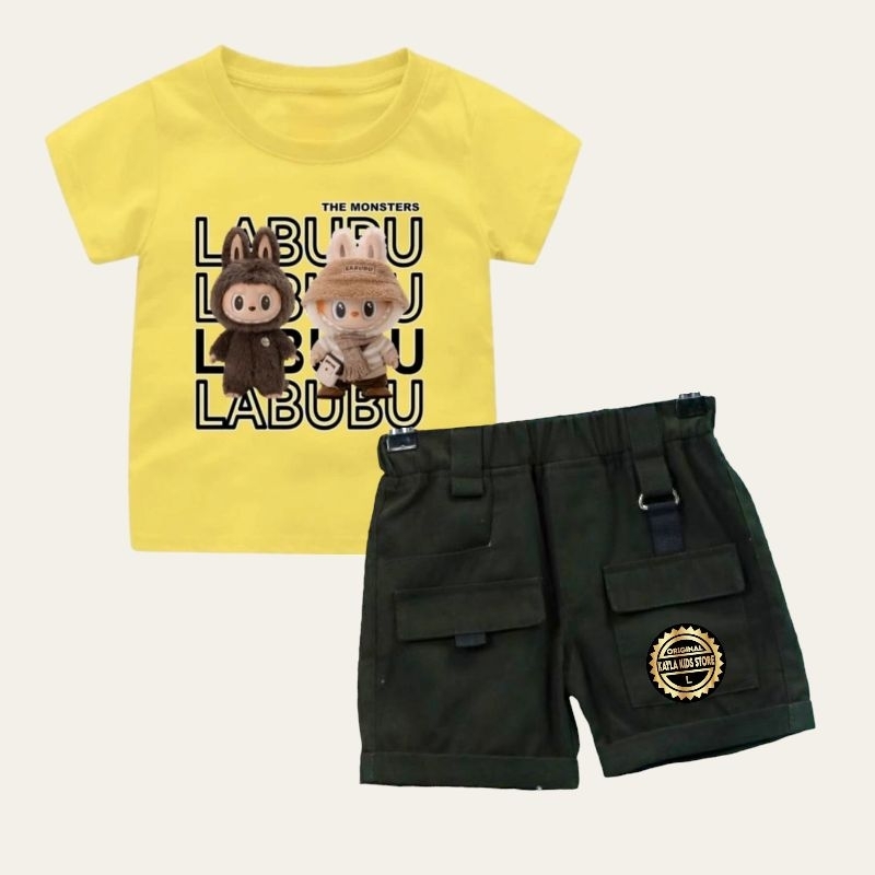 Kaylakids - Baju Kaos Setelan Anak Motif Labubu Terbaru Bahan katun kombed Dan Celana Cargo Premium Untuk Usia 1-9 Tahun