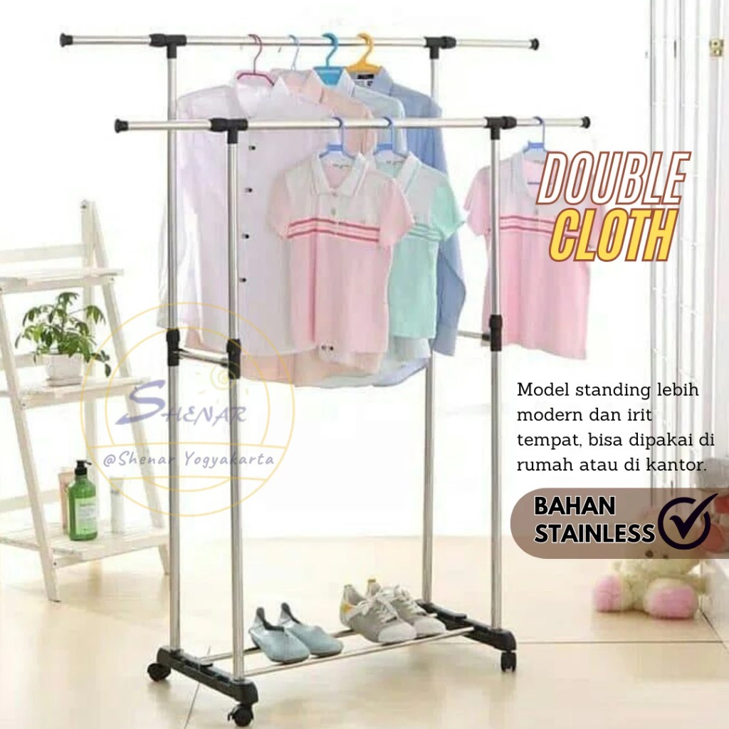 Gantungan Baju Portable Double Single Triple Pole Stainless SHENAR Standing Cloth Hanger