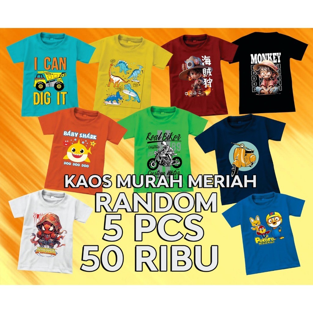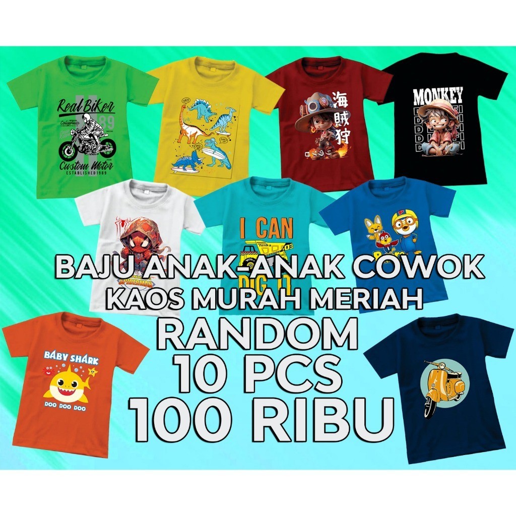 PROMO PAKET HEMAT RANDOM ISI 10 PCS 100000 /100 ATASAN KAOS ANAK LAKI-LAKI LENGAN PENDEK GRATIS HADIAH AMPLOP UKURAN S-XXL