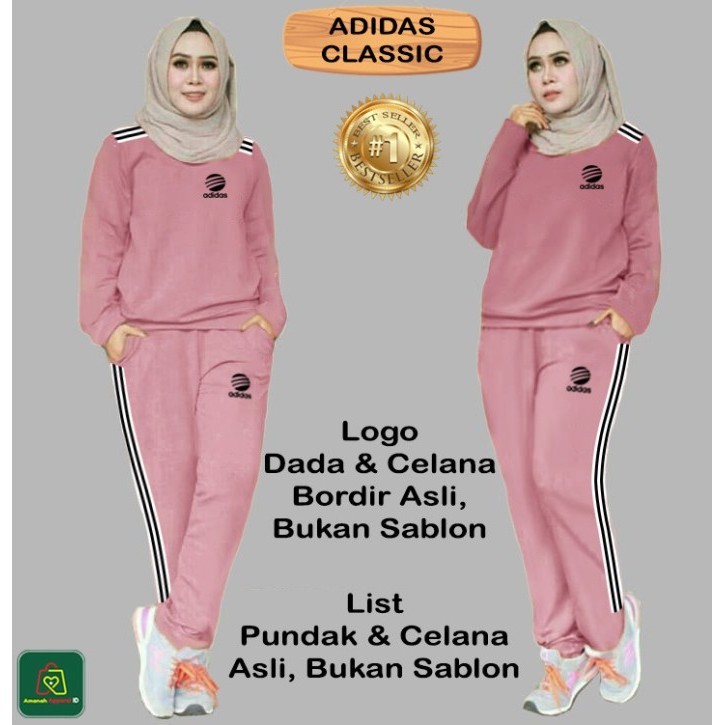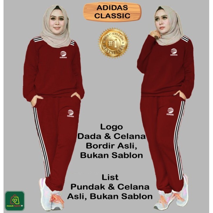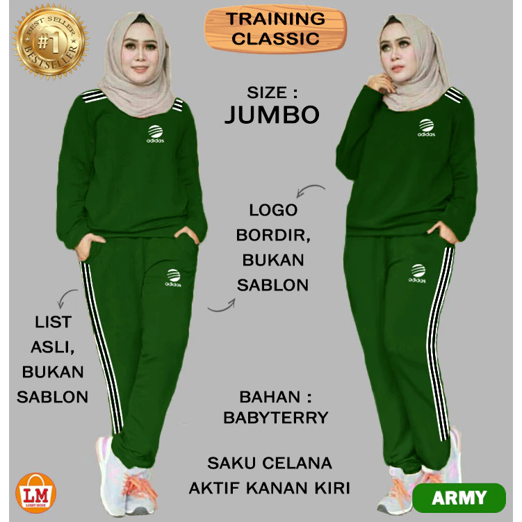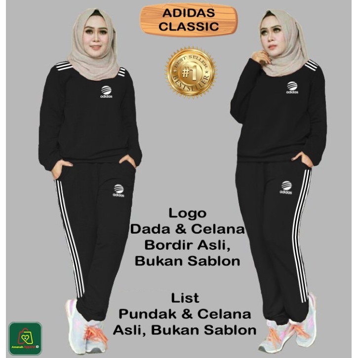 SET ADS Classic Setelan Kaos Olahraga Wanita Muslimah Lengan Panjang XL XXL XXXL