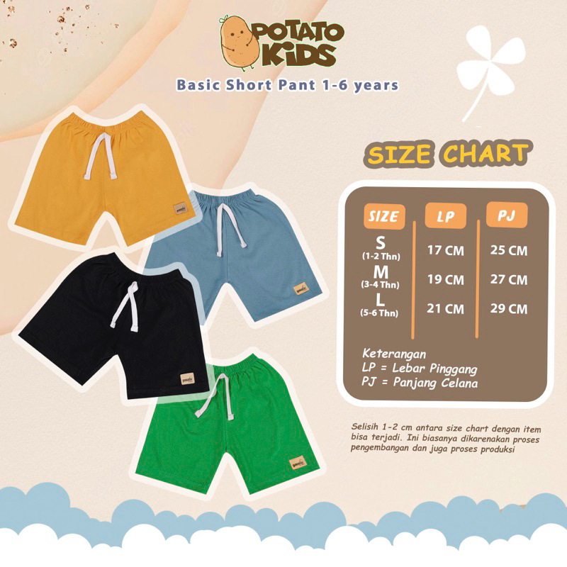 Celana pendek anak polos unisex umur 1-6 tahun Original Potato Kids // bawahan celana pendek laki-laki perempuan