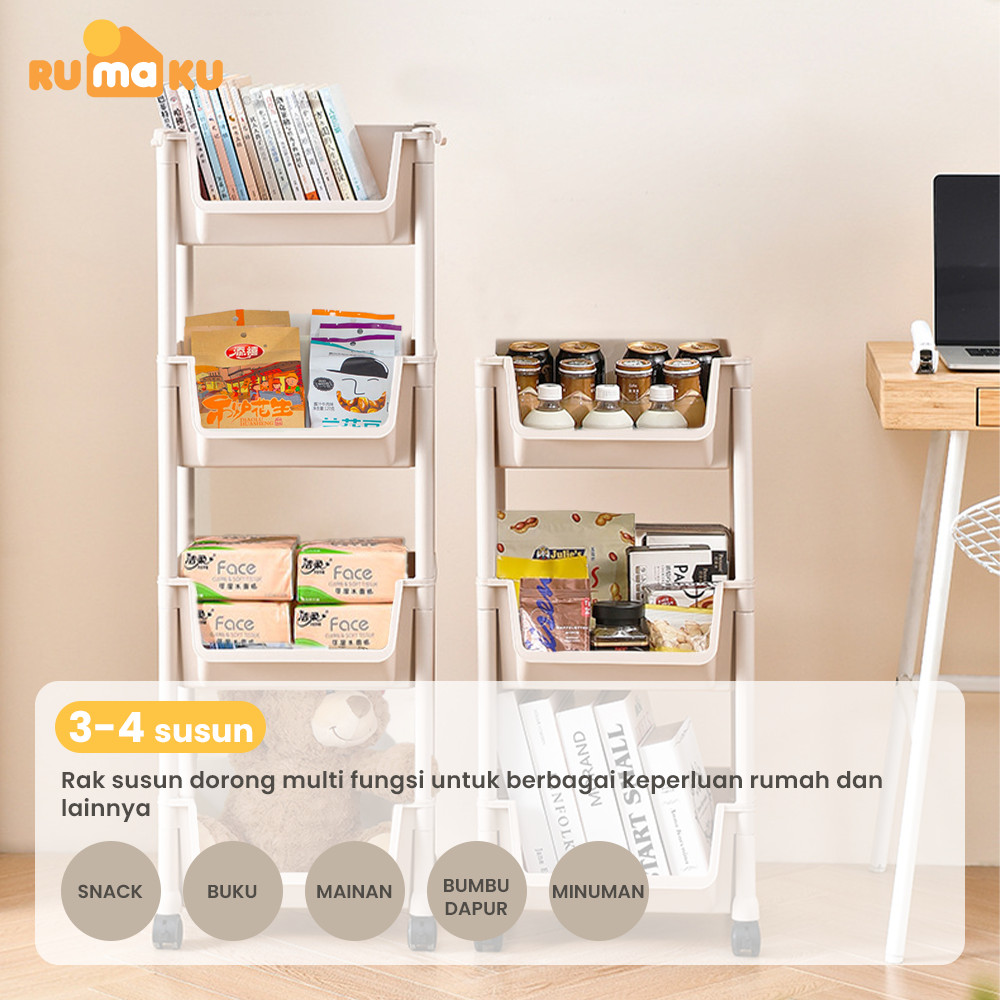 Rumaku Rak Dapur Serbaguna Rak Troli Rak Kamar Mandi Rak Susun Plastik dengan Roda
