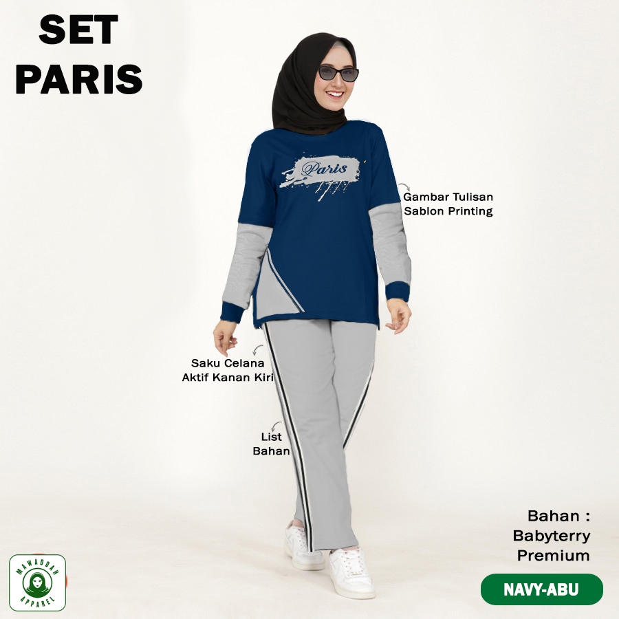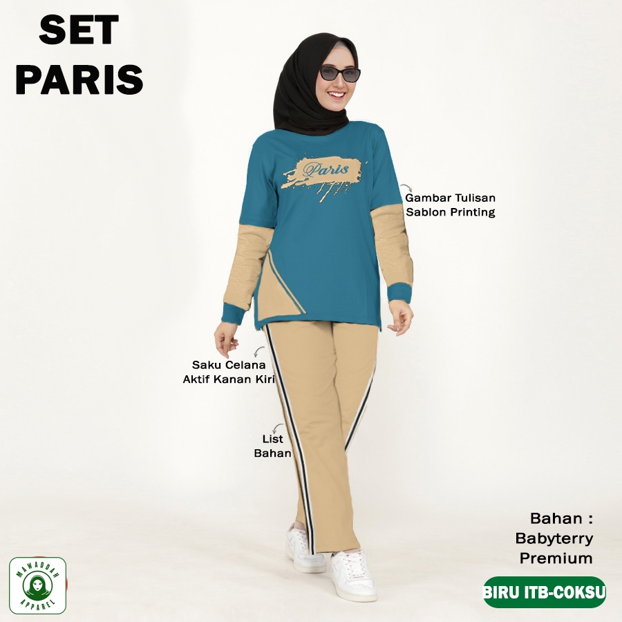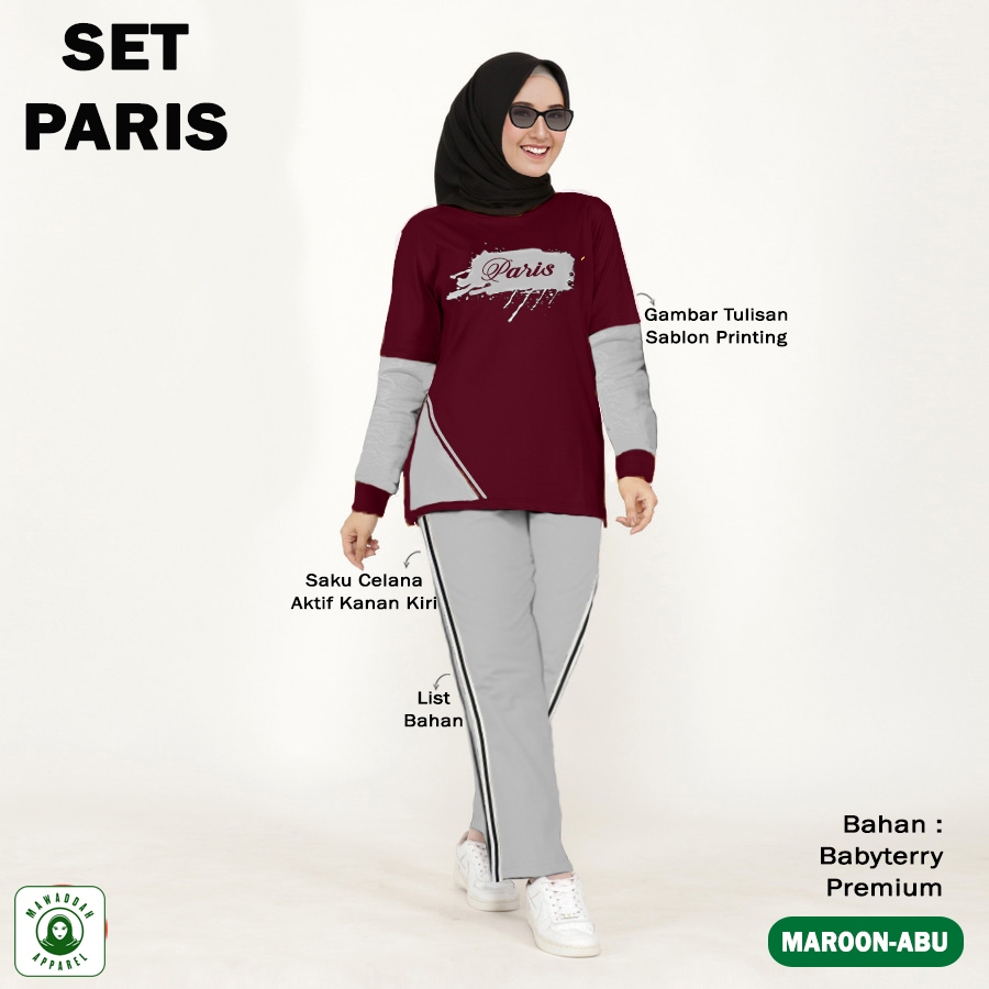 MA SET PARIS - Setelan Kaos Celana Olahraga Senam Wanita Muslim Sablon Bahan Babyterry Adem Size XL XXL XXXL / 3567